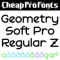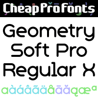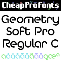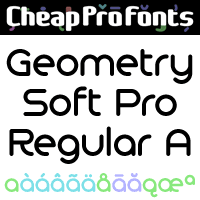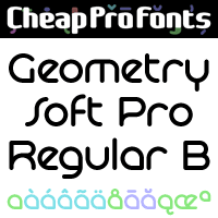 The "Geometry Pro" family has been designed to be the final word in purely geometric fonts, and this rounded "Soft" sub-family is the ultimate web 2.0 style font collection. Even though it is strictly geometric (as drawn with a compass and a ruler fixed to 90 and 45 degree angles) it is not slavishly modular: letters have differing widths, and the sidebearings, spacing and kerning has been finely adjusted to create smooth text. The Soft family contains three weights each with 6 variants: - A is the basic form and the starting point - B has more dynamic and modern shapes - C has open and swirly shapes - X is the serious text version - Y has a very horizontal look - Z is a collection of all the remaining more funky shapes Mix and match to your heart's desire! Geometry Soft Pro Regular is a professionally reworked font that contains an extended character set for setting text in 65 languages requiring more than the basic A-Z!